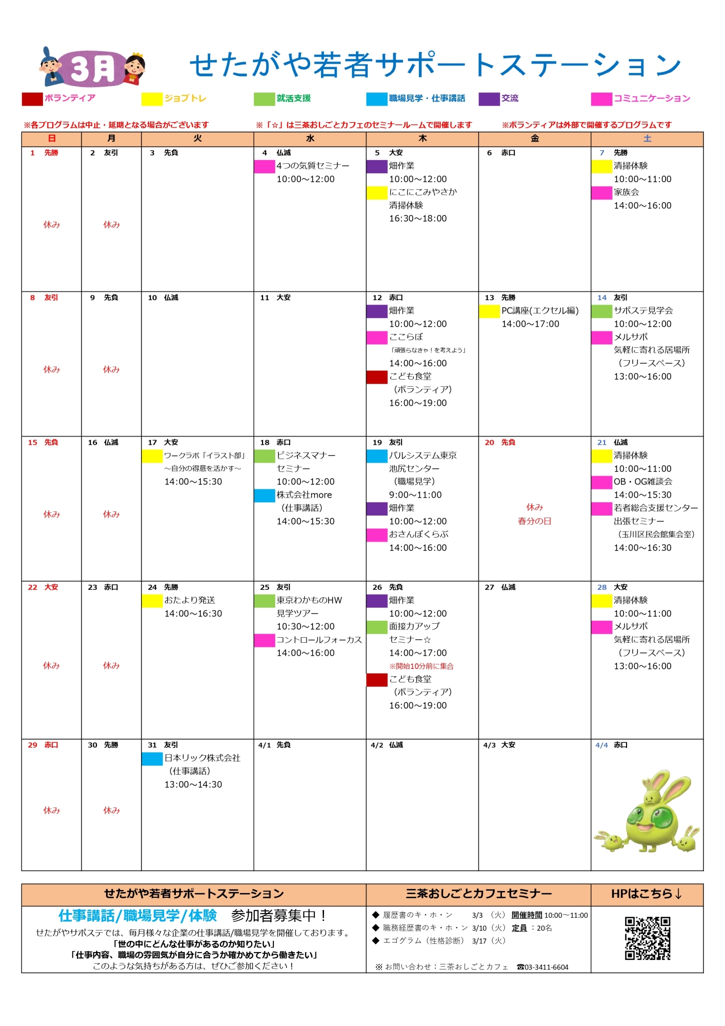2024年3月のプログラムカレンダー