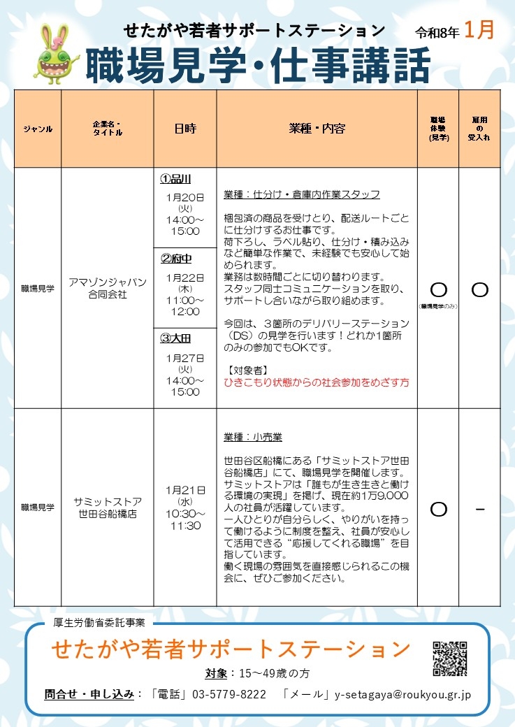 2026年1月の職場見学・仕事講話を公開いたしました。