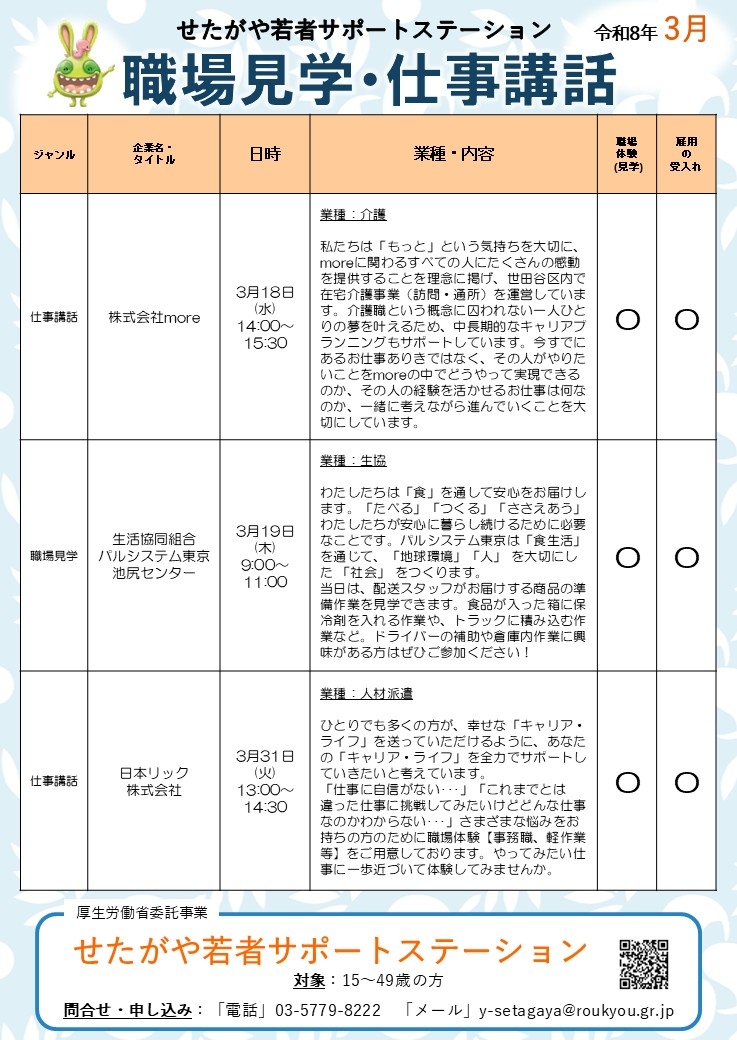 2026年3月の職場見学・仕事講話チラシを表示