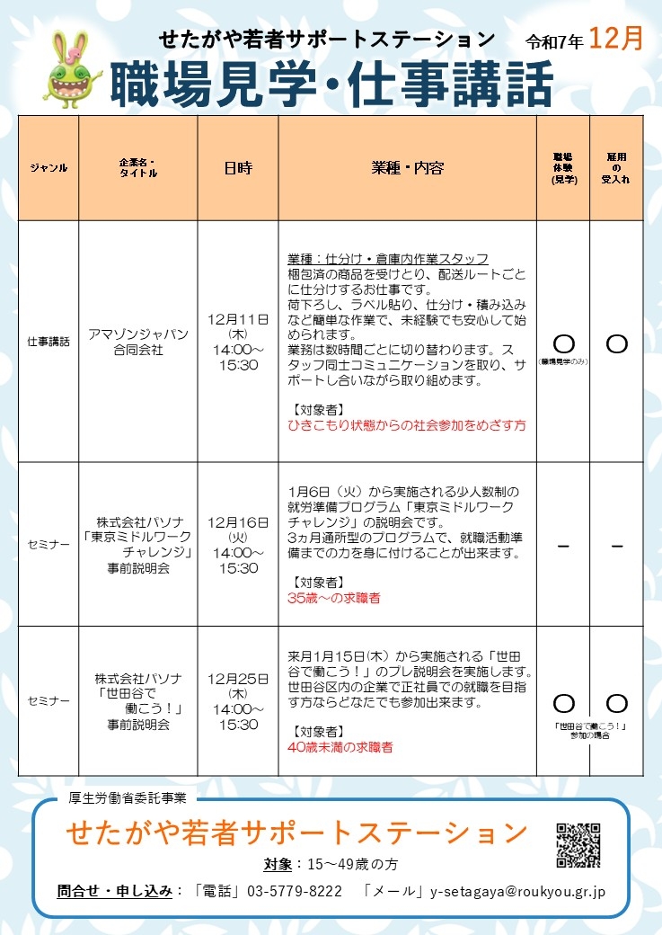2025年12月の職場見学・仕事講話を公開いたしました。