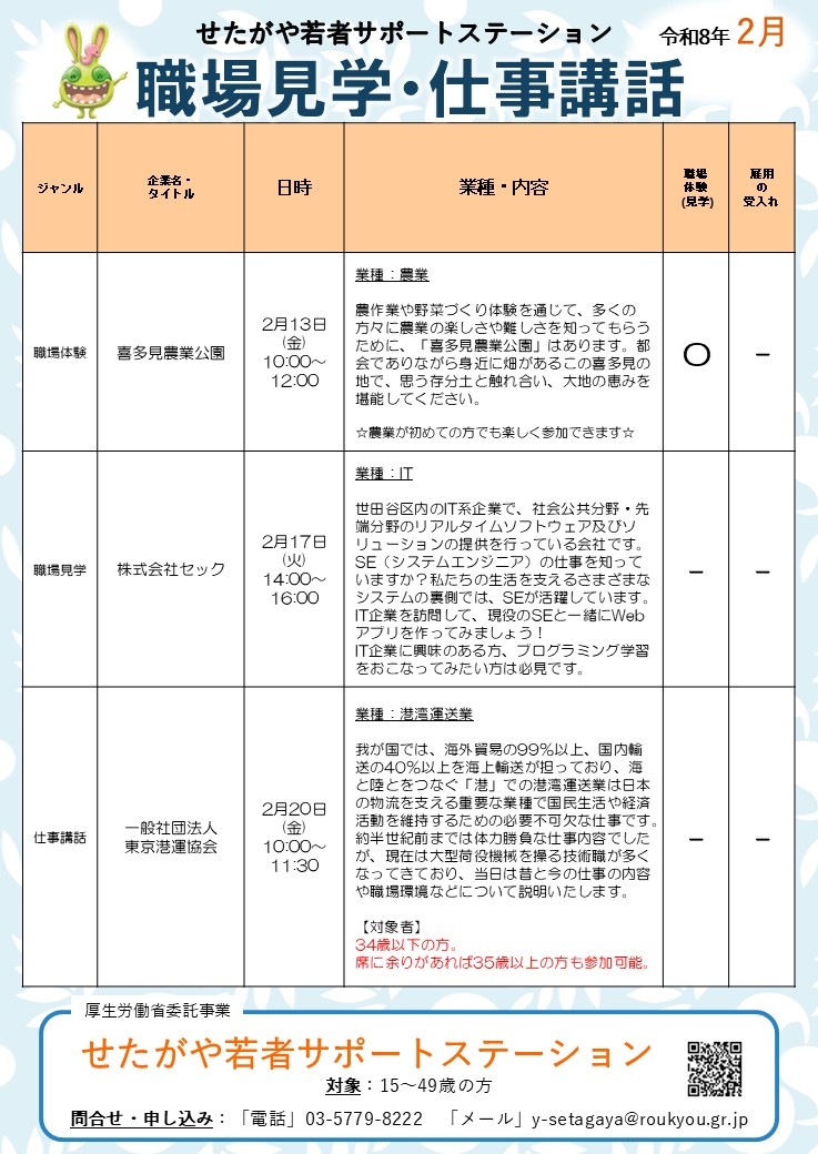 2026年2月の職場見学・仕事講話を公開いたしました。